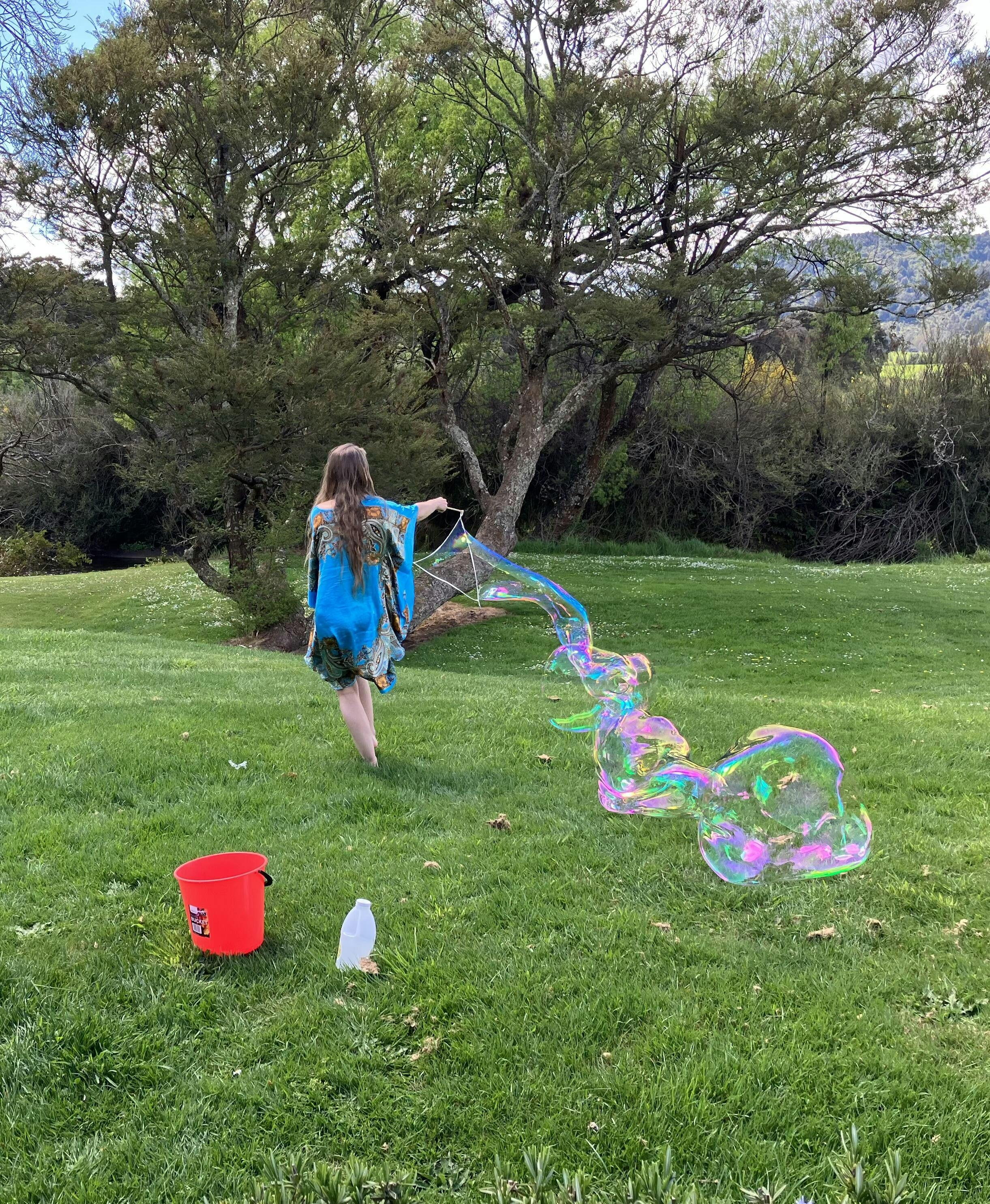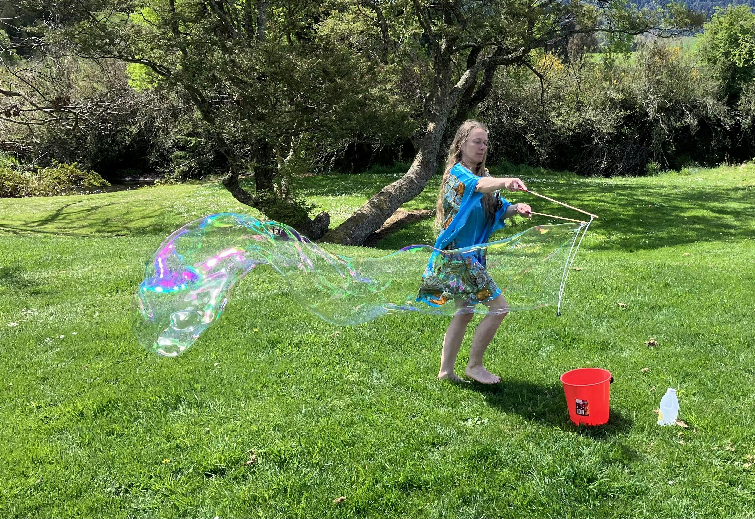 My great-niece, her dad (my nephew), her mum and her baby brother had a glorious time making bubbles. They aren't me a photo of the happy girl jumping for the giant bubble.